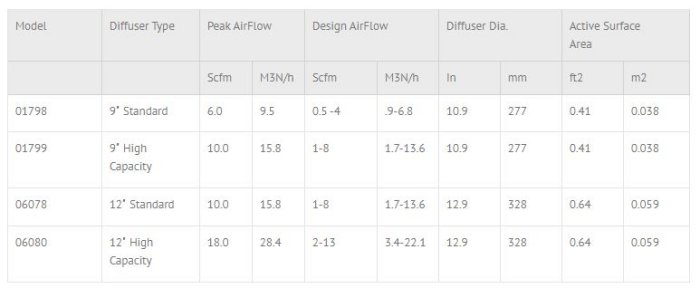 The 9-inch and 12-inch diameter diffusers employ a 3/4-inch diameter NPT (male) threaded connection for ease of installation/maintenance and universal application. Units can be mounted using the universal diffuser mount and are also available with Saddle Mount configuration (as shown), which provides unmatched mechanical strength.