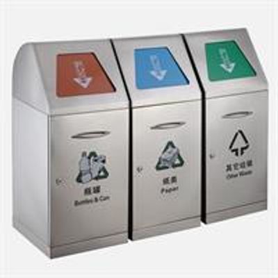 GMT-302 Three compartment decorative stainless square eco dustbin Envirobin Office Recycling Bins. Smooth inside and outside surface. Constructed of heavy duty brushed stainless steel. Modern design recycling bin available in 2, 3 or 4 compartment. The perfect choice for eco-friendly and modern public space, top removes from body for easy emptying and cleaning. Customized message for waste separtation. Molds shaped one-time. Removable galvanized inner bin is easy to clean, change and maintain.