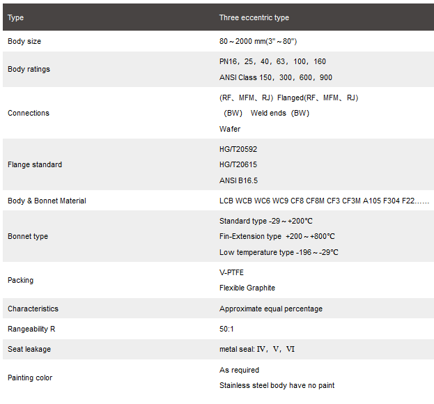The BR.W73E series three eccentric high-performance sealing butterfly valve has a unique three-dimensional eccentric structure and good shut-off performance. It is a new type of regulating valve that combines both regulation and shut-off functions, with a compact structure, simple flow path, low pressure loss, and high rated flow coefficient, can effectively meet various working conditions and requirements. It is widely used in fluid regulation in industrial automation control applications.