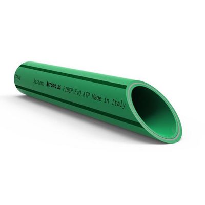 TORO 25 FIBER EvO system consists of three-layer pipes made of PP-R EvO, Random Cpolymer Polypropylene with special and improved crystalline structure, reinforced with glass fiber, used for the adduction of pressure fluids. This particular blend is called Fiber Evo: Fiber → glass fiber ; EvO → PP-R EvO.