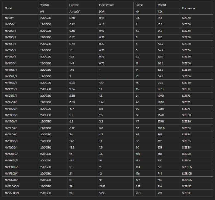 Three Phase (220v/380v) 6 Poles 1000/1200rpm 50/60hz.