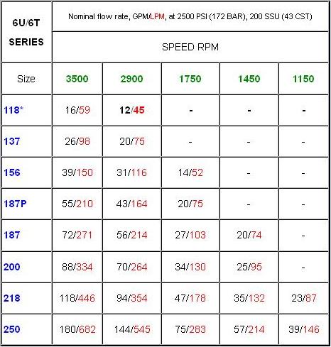 • Connections- Inlets and outlets are SAE 4-bolt flange pads. Mating socket weld flanges are included with 6T series pumps but must be specified and purchased separately for 6U series pumps. All 6T inlet heads are rotatable in 90° increments. Series 6U inlet heads are rotatable in the following increments: Sizes 137 & 156: 60°. Sizes 187 & UP: 45°. SAE port pad bolt patterns are for 3000 PSI rated flanges except the 6U-118 and 187/200 use a 6000 PSI pattern and the 218/250 inlet uses a 500 PSI pattern.