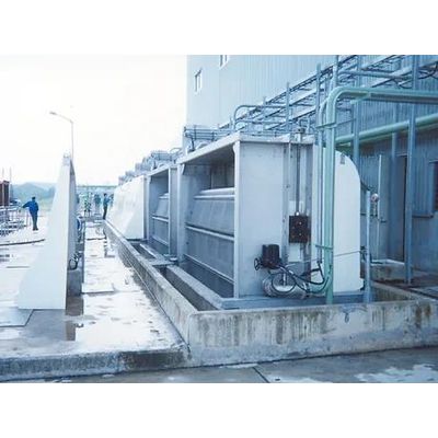 Installed across a channel in which the water to be cleaned flows through. The screen consists of a set of rectangular screening mesh panels, carried by two endless chains. The downstream panels travel down into the water, around the bottom and up again along the upstream side. The water flows across the upstream and then the downstream panels. The debris are arrested on the upstream face. The debris-laden panels travel up above deck level, around the top and down again. One or two spray pipes with fantail jet nozzles set on the down stream side of the panels within the screen`s head structure, back-wash the panels, remove the debris which are projected into a collection trough. They travel in a deck flume to the debris disposal system (basket, separator, etc.). The screens are normally stopped and are washed periodically when obstructed by debris. Permanent rotation can be provided.