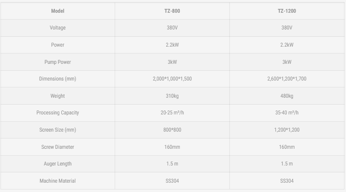 Our sloped screen dewatering machines employ a combination of gravity and mechanical pressure to dewater materials. These machines are suitable to process the materials with high water content, such as soaked manure, biogas slurry, slaughterhouse wastewater, etc. Below are more parameters for your reference.