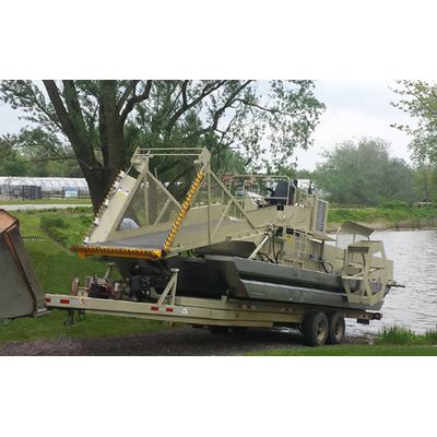 Designed to launch and retrieve in shallow situations, the TTR-12 Tilt Trailer is compatible with 220 Series and smaller Harvesters and the TH-12 Trash Skimmer.