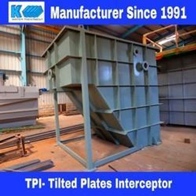 The TPI consist of a number of inclined corrugated plates mounted parallel to each other usually at spacing of 2 cm. The raw water containing the oil and suspended solids passes between the plates from top. Laminar flow conditions are essential for the effective gravity separation of the water, the oil and suspended contaminants. In the course of passing from pack inlet to pack outlet, the oil floats upwards into the tops of the corrugations and rises up the incline of the plate to the surface of the system where it is removed by a skimmer. The sludge moves towards the bottom of the corrugations and slides down the incline of the plate spacing. From there the sludge is collected in a hopper to be discharged intermittently through a blow off valve manually or settled sludge cannot recontaminate the treated water.