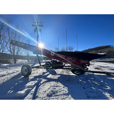 The TWC-16 firewood conveyor has a 16` reach and can operate as high as 10` in the air. The wood conveyor comes standard with self-aligning tapered rollers for belt tracking and a hydraulic lift cylinder for height adjustments.