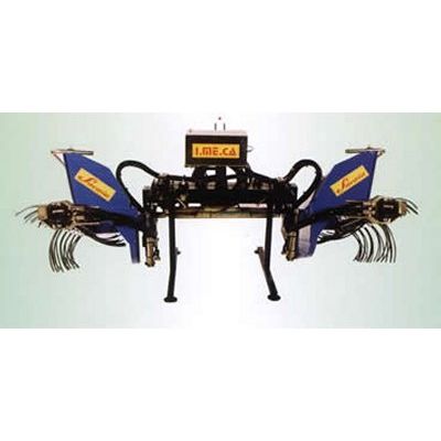This machine is used to eliminate in a mechanical way the suckers at the beginning of vegetative period. The heads can be length 100 or 80 cm and must be combined with frames of different dimensions as follow : - frame for a single head ( to work only one side therefore it will be necessary two ways to complete a row. - central frame with two heads: to work two half rows in a way (one on the right and one on the left) . - tunnel frame : frame steps over two heads mounted in a opposite side (it could be preview as accessory to insert into the machine some automatic working sensors to maintain a constant height from the ground)