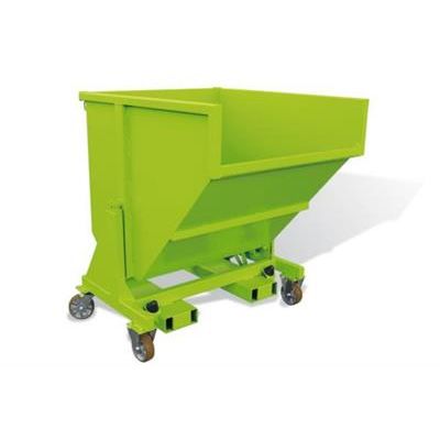 Capacity : 480 to 2500 litres. Bin : 3 and 4 mm sheet metal. Rigid tubular chassis : 4 and 5 mm sheet metal. Sealed cross-bars (improved interior pipe corrosion resistance). Automatically unlocks and tips on contact (anti-slip device). Lever for manual tipping. Fork sleeves aperture and spacing (F) can be modified on request. Pedestal-mounted models (except the 480 L model) can be used with pallet trucks (between fork sleeves). Castor-mounted models have 2 fixed + 2 pivoting alu/polyurethane castors and a handrail. Safety chain included. Options on request.