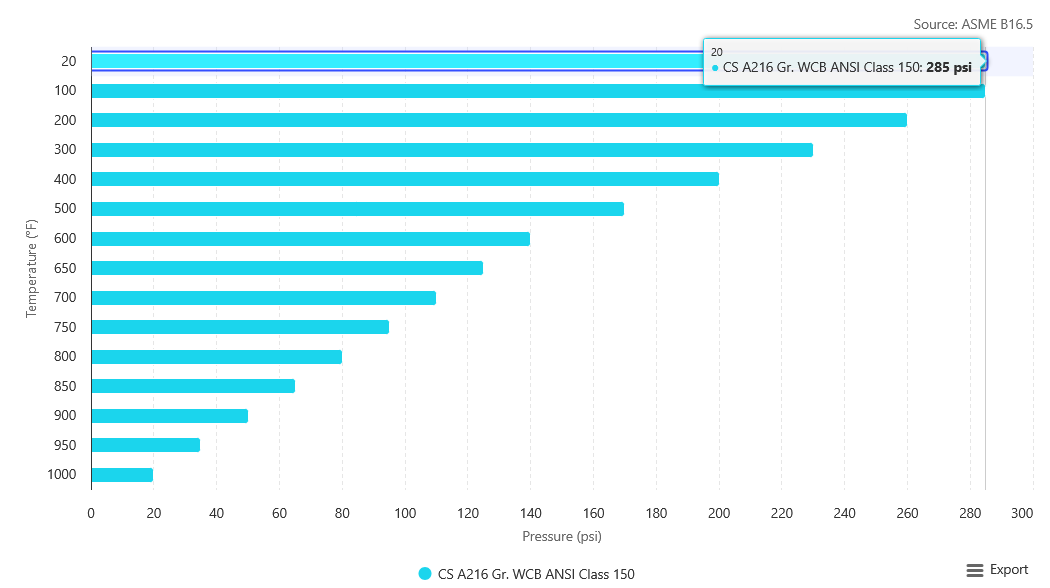 - ASME Rating: Class 150