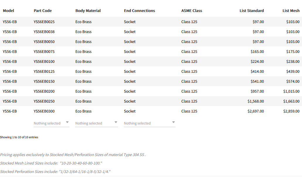 Product Features: New Eco-Brass Material. Large Straining Capacity. Precision Machined Seats. Self Cleaning Capability. Potable Water/FDA Applications.