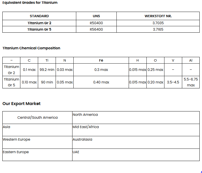 - Grades : Titanium grade 1 ,Titanium grade 5.