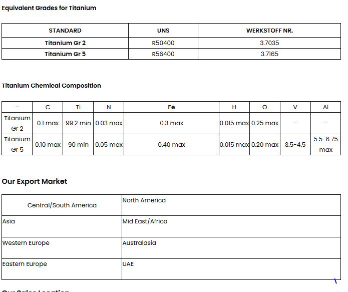 - Grades : Titanium grade 1 ,Titanium grade 5.