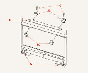 Step 4 – Slide Clamp Clips (B) in place and align holes with threaded holes in Spacer Bar (A).