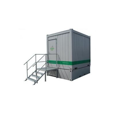 The toilet unit is a flexible solution for the sanitary facilities on a location. It has three toilets of which one urinal, a washbowl that provides warm water and a waste water tank of 3000 liter. The toilet unit needs normal water pressure and a 380V 32a CE 5-polig electric connection. The tank is provide with forklift tubes and hoisting eyes.