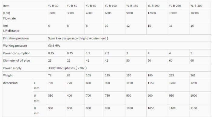 • YL-R contain heating system, when oil viscosity≥200cSt, you can choose this one
