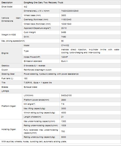 Dongfeng - Model 4 -Tons Flatbed Wrecker Trucks