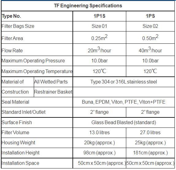 - Two housing sizes for filter bags sizes 01 and 02