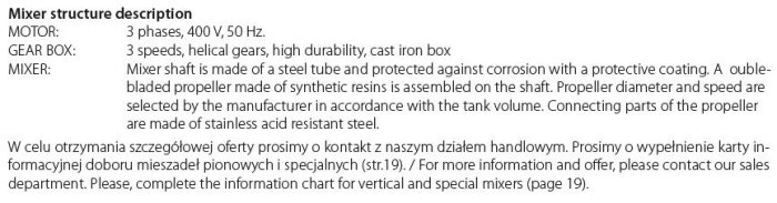 This mixer can be used in process water treatment plants, in particular in the power industry. The propeller puts the water in motion upwards. Due to the applied propeller, the water treatment process is improved because it is mixed with chemical compounds. Therefore, the full chemical reaction in the whole water volume of the bottom part of the central chamber is provided.