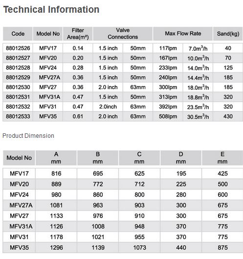 Emaux - Model Max - MFV Series -Top Mount Filter