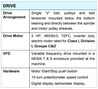 Additionally, units come with a large 6 inch diameter curb top sight glass. With a 500 pound capacity, the manual winch provides easy extraction of filter bags and basket change outs. Motor and controls consist of variable frequency drive, start/stop buttons, speed potentiometer and digital RPM display mounted in an explosion proof NEMA 7/9 control panel.