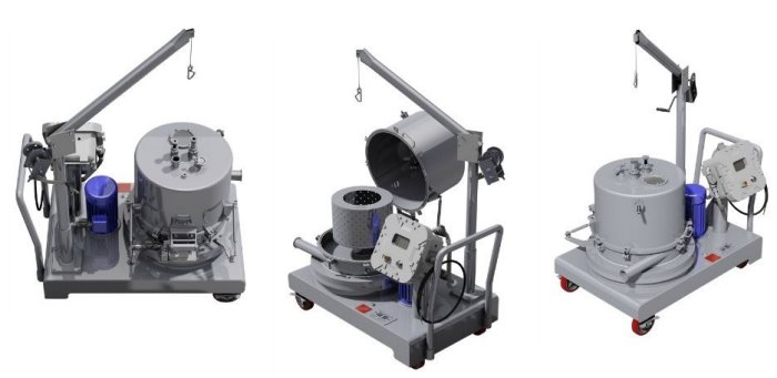 - Easy, Full Opening, Gas Spring Assisted Curb Top, for accessing the removal of filter screens, filter bags and visual inspection of centrifuge chamber