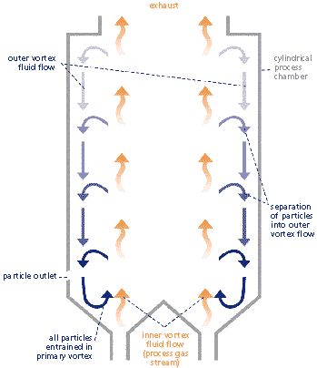 Inside the TORBED EBR, a diffuse bed of particles is held in cyclonic motion in the high velocity process gas stream. Centrifugal forces carry the particles outwards from where they are conveyed downwards to the reactor base where they are re-entrained in the process gas stream.