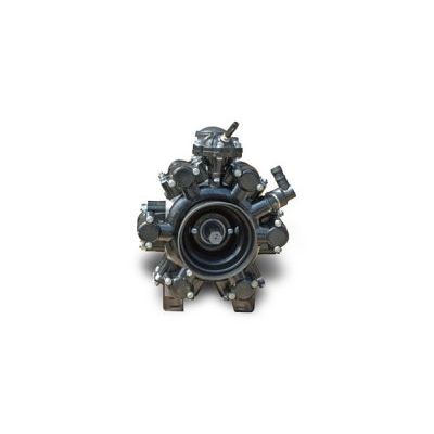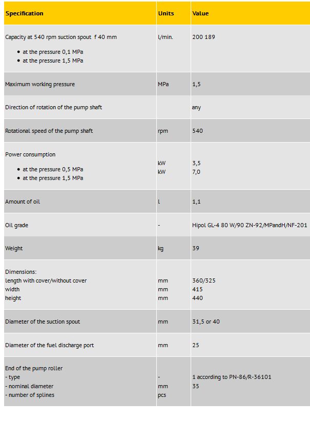 It can be used to work with plant protection products and liquid mineral fertilisers admitted for trading in Poland. Is is a diaphragm-piston, six-cylinder pump on, on rolling bearings (shaft in the body) and sliding (connecting rods on the shaft). It is made of aluminium alloys, plastics and good grades of steel, and therefore it is resistant to corrosive effects of liquid mineral fertilisers.