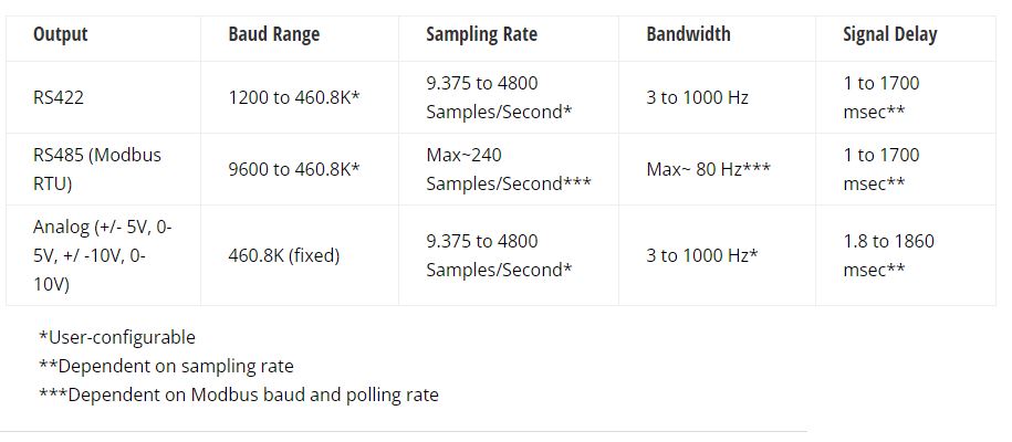 - Strain gage bridge, 350 ohms (std), 120 ohms (min)