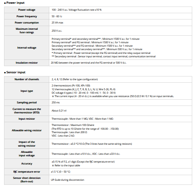 Touch panel 5.7 Inch 640 x 480 TFT-LCD. Universal input ( Thermocouple, RTD, VDC ). Trend view mode available. 350M byte internal memory and support SD memory card. RS 422 / 485 + ETHERNET communication.