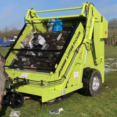 The Barber LP-1 is a tractor drawn mechanical Litter Picker. The machine is effective on grass, dirt, and paved surfaces. The picker gently combs the ground while removing surface litter such as paper, cans, cardboard, wood, cups etc. It is ideal for collecting litter typically left after a festival or event. The LP-1 utilises height adjustable castor wheels to follow the contour of the area being cleaned. It can clean up to 3.24 hectares per hour, depending on land conditions and the amount of litter to be removed. The hopper capacity is 3.05 cubic metres and can dump its contents hydraulically to a height of 2.65m.