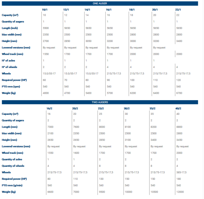 - Vertical auger (s) with special knives for quick processing of bales of any type