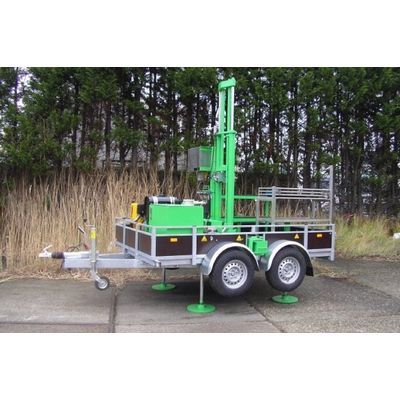 A 200 kN trailer-based CPT penetrometer rig is a lightweight and economical rig with full CPT testing capabilities. It is suitable for both electrical and mechanical CPT testing. It can be towed easily by a 4-wheeldrive car. It comprises a sturdy 2-axle trailer base, a 2-cylinder CPT penetrometer pusher, a diesel-hydraulic power-pack with load-sensing pump, manually operated valves, a work platform at the rear, a levelling system, an anchoring system, tube racks, stainless-steel housing for datalogger and computer, etc. All accessories and CPT equipment can be lodged on the trailer itself.