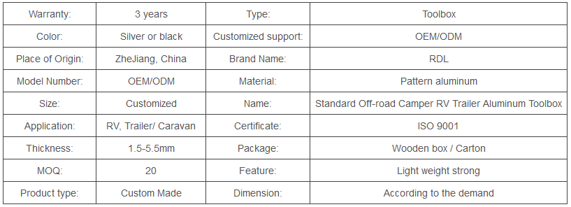RDL crafts competitively priced customized RV, Trailer/Caravan’s toolbox. Let RDL`s expert manufacturing grant you a global edge. Contact us for a free quote.