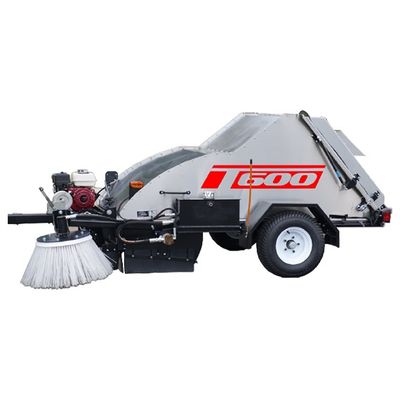 The Victory T600 is a trailer-mounted mechanical sweeper designed to remove debris from a wide range of surfaces. Weighing in at under 1,000 lbs, it can easily be towed by a variety of vehicles from a standard car or truck down to a 4-wheeled ATV. The sweeper is powered by a fuel-efficient, 5.5 hp Honda gasoline engine. The engine operates the sweeper by rotating a specialized drum outfitted with surprisingly efficient rubber paddles. Extremely fuel efficient, the T600 can operate an 8-hour shift on less than 1.5 gallons of gasoline.