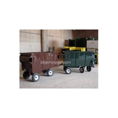Transport materials from point of generation to a Compactor. reduces material handeling labor costs. heavy-duty carts designed for quiet operation over rough terrain. greaseable and serviceable stearing mechanism and spindles. trainable carts can be towed behind a golf cart or pick-up truck. container size and dimensions are custom desgned to your application.