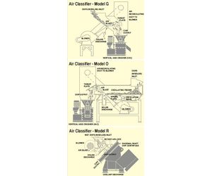 Note: These drawings indicate the general operation, size and configuration of the air classifier PRAB parts separators. The actual configuration, operating capacity and dimensions will reflect the type of materials being processed and other equipment required downstream in the system.