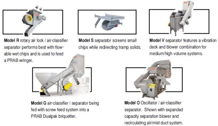 PRAB`s five unique separators are engineered to perform at different levels to efficiently handle the variety of metal chips and turnings produced by today`s high-speed, metalworking industry.