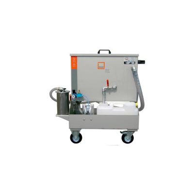 Specific Characteristics: Throughput 200 - 400 l/h, Pre Filter 350 µm, Stainless Steel Angle Section, Self-priming Pump (compressed-air membrane pump), Working without Electrical Connection.