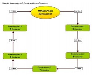 - Morning departure of the Trans-Pack to the daily application at 5 different container places with altogether 27 containers.