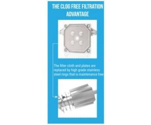 The series of heavy duty finely machined fixed and rotating rings placed alternately provides efficient filtration that remains clog free due to the continuous movement of the rings. This eliminates the need for consumables like filter cloth etc.