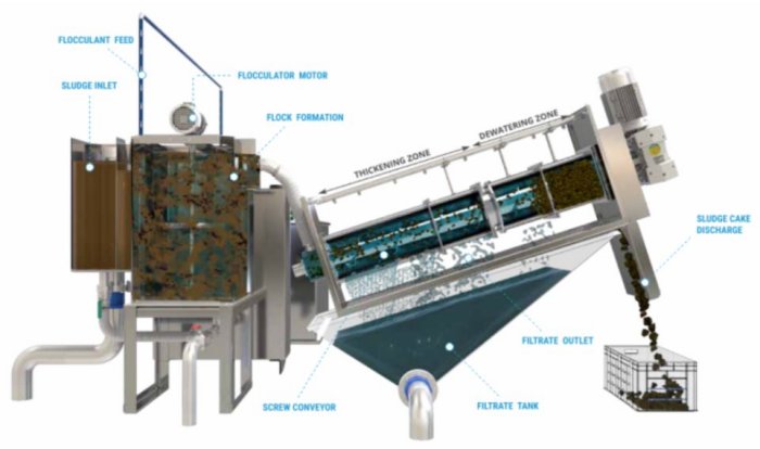 The conventional sludge dewatering systems like centrifuges, Belt press, Filter press (Plate & Frame type) have many draw backs. The drawbacks include