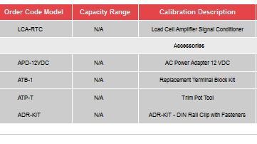 The LCA-RTC Module provide low-cost, dedicated signal conditioning for a single bridge type load cell or torque sensor. Model LCA-RTC comes with removable screw-clamp terminal connectors, which accept wires without soldering. On- board jumper selections include sensitivities from 0.5 mVA/to 10 mVA/, bandwidths from 100 Hz to 30 kHz, and amplified outputs of 0 to ±5V, 0 to ±10V, 0-16 mA. 0-20 mA or 4-20 mA. Zero and span adjustments are via precision 25-turn low-tempco metal film potentiometers. The units can be operated next to the sensor with 4-wire hookup or at distances up to 1 km (3300 feet) with 6-wire hookup. An onboard 87.325 kO resistor allows easy shunt calibration at the push of a button. Provision is also made for a user-furnished calibration resistor. Power requirements are 11.8 to 26V DC with load currents from 10 to 60 mA. the latter applying when the unit provides 10V DC excitation to a 350 ohm load cell and delivers a 20 mA analog output.