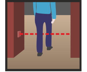 The PEM7D outputs a low (0V) when the beam is detected and high (9V) (person passing) when the beam is interrupted.