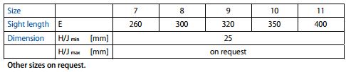 - Sight lengths see table