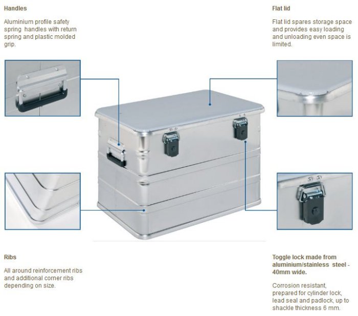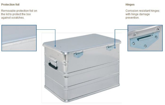 - Quality, endurable aluminium box. 1.0 mm aluminium sheet material on