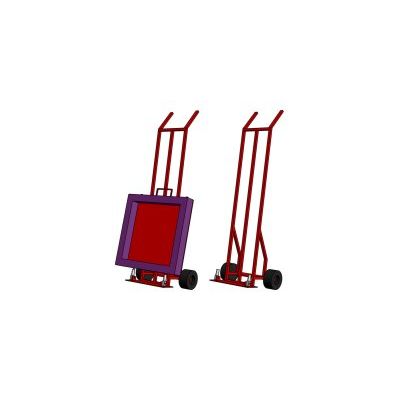 There also exists the possibility of mounting a fire extinguisher on the rear side of the "bag truck." The transport cart is of normal steel, powder-coated, generally with a red finish ("traffic red" RAL 3020).