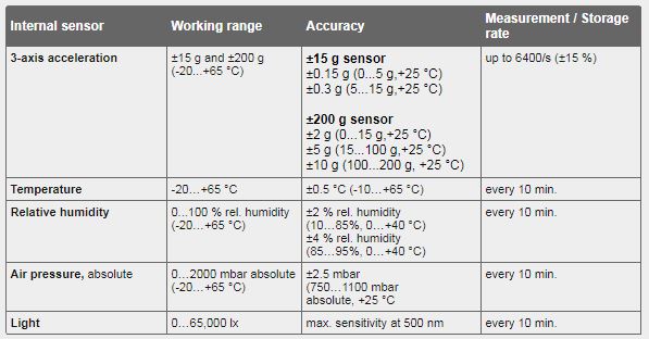 • Determines transport stresses such as shocks, jolts, temperature, humidity, air pressure fluctuations and light incidence
