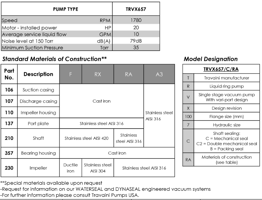 Travaini Pumps - Model TRVX 657 -Single Stage Liquid Ring Vacuum Pump