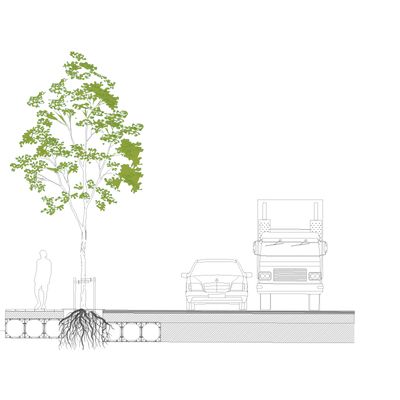 Trees in paved traffic zones have never had the best growth conditions. They are often planted in a minimum amount of earth, surrounded by traffic routes. In the middle of a dense, urban network, planted on highly compressed and unsuitable substrata, it is difficult for the roots to develop. The use of special planting substrata in combination with an adjusted bearing stratum structure is one way of improving the quality of the tree site. There are various ways of creating a bearing stratum which can absorb a substratum and which complies with the growth conditions necessary for trees, but can still bear pavement and other ground coverings such as concrete or asphalt structures.